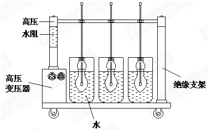 使用前先將水電阻內(nèi)注水,注滿水的水電阻安裝在移動(dòng)托架上,再將電極桿支撐兩端插入絕緣撐桿和水電阻內(nèi)。