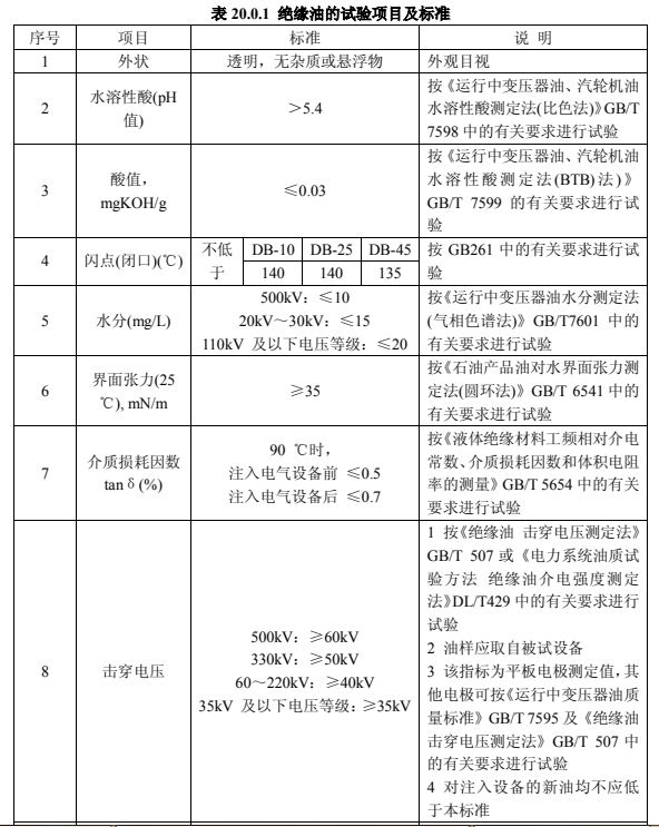 1)換油時應按本標準表 20.0.1 的規定進行;